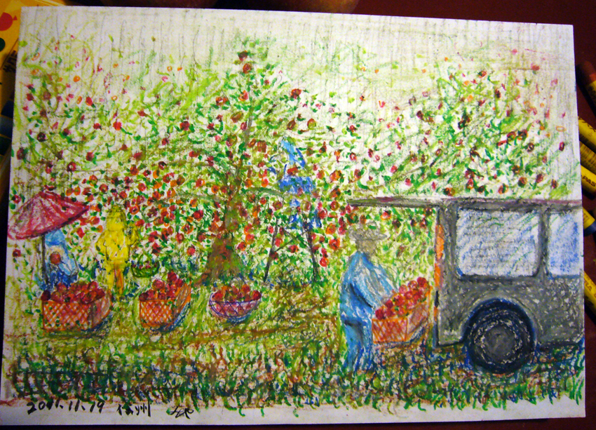 \u6606\u304f\u3093\u306e\u300c\u65e8\u3044\u3067\u3059\u306d\uff01\u300d\u306b\u601d\u3046\u306e\u3067\u3059\u3002\u8db3\u3092\u904b\u3073\u3001\u3061\u3087\u3063\u3068\u523a\u6fc0\u7684\u306a\u6642\u9593\u3092\u904e\u3054\u3059\u3053\u3068\u304c\u3001\u4eba\u751f\u3092\u8c4a\u304b\u306b\u3059\u306e\u3067\u306f\u306a\u3044\u304b\u3068\u30fb\u30fb\u30fb\u30fb\u3002\u601d\u3044\u51fa\u3068\u8a00\u3063\u3066\u3082\u826f\u3044\u3067\u3057\u3087\u3046\u304c\u30fb\u30fb\u30fb\u305d\u306e\u4f53\u9a13\u304c\u3001\u30ea\u30f3\u30b4\u306e\u304a\u3059\u305d\u308f\u3051\u3059\u308b\u6642\u306b\u4e00\u8a00\u6dfb\u3048\u305f\u8a00\u8449\u306e\u8d08\u308a\u7269\u306b\u306a\u308a\u307e\u3059\u3002\u305d\u3057\u3066\u3001\u4f53\u9a13\u3092\u3057\u3066\u3044\u308b\u304b\u3089\u3053\u305d\u3001\u7d75\u3082\u63cf\u3051\u307e\u3059\u3002<\/p>\n