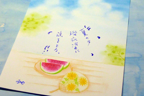 \u30fb\u30fb\u30fb\u30fb\u30fb\u30fb\u30fb\u30fb\u30fb\u30fb\u30fb\u30fb\u30fb\u30fb\u30fb\u30fb\u30fb\u30fb\u30fb\u30fb\u30fb\u30fb\u30fb\u30fb\u30fb\u30fb\u30fb\u30fb\u30fb\u30fb\u30fb\u30fb\u30fb\u30fb\u30fb\u30fb\u30fb\u30fb\u30fb\u30fb\u30fb\u30fb\u30fb\u30fb\u30fb\u30fb\u30fb\u30fb\u30fb\u30fb\u30fb\u30fb\u30fb\u30fb\u30fb\u30fb\u30fb\u30fb\u30fb\u30fb\u30fb\u30fb\u30fb\u30fb\u30fb\u30fb\u30fb\u30fb\u30fb\u30fb\u30fb\u30fb\u30fb\u30fb\u30fb<\/p>\n \u3055\u3066\u3001\u4eca\u65e5\u306f\u8da3\u5473\u306e\u57df\u306b\u5165\u308a\u3064\u3064\u3042\u308b\u300c\u6c34\u5f69\u753b\u300d\u3092\u63cf\u304f\u697d\u3057\u307f\u3092\u3075\u308a\u8fd4\u3063\u3066\u307f\u305f\u3044\u3002<\/p>\n \u6c34\u5f69\u753b\u306f\u3001\u5f53\u7136\u3060\u304c\u300c\u6c34\u300d\u3092\u64cd\u308b\u63cf\u753b\u6cd5\u306a\u306e\u3060\u3068\u6539\u3081\u3066\u5b9f\u611f\u3068\u3057\u3066\u77e5\u3063\u305f\u3002\u7d75\u306e\u5177\u3092\u6c34\u3067\u6eb6\u3044\u3066\u753b\u7528\u7d19\u306b<\/p>\n \u7f6e\u3044\u3066\u3044\u304f\u3002\u7d75\u306e\u5177\u304c\u5b9a\u7740\u3059\u308b\u307e\u3067\u306e\u6642\u9593\u304c\u3001\u8868\u73fe\u306b\u5473\u3092\u3060\u3059\u3002<\/p>\n \u307e\u305a\u3001\u30e2\u30c1\u30fc\u30d5\u3092\u773a\u3081\u63cf\u753b\u30d7\u30e9\u30f3\u3092\u7df4\u308b\u3002\u3053\u306e\u6642\u306e\u308f\u304f\u308f\u304f\u611f\u3092\u5927\u4e8b\u306b\u3057\u3066\u3001\u30d5\u30a9\u30eb\u30e0\u3084\u8272\u5f69\u3092\u89b3\u5bdf\u3059\u308b\u3002<\/p>\n \uff11\uff10\u53f7\u306e\u7b46\u3067\u5927\u96d1\u628a\u306a\u8272\u3092\u5857\u308b\u3002\u3053\u306e\u6642\u306f\u3001\u5b8c\u6210\u753b\u306e\u30a4\u30e1\u30fc\u30b8\u306a\u3069\u3067\u304d\u306a\u3044\u3002\u53ea\u30dc\u30f3\u30e4\u30ea\u3068<\/p>\n \u8272\u304c\u7f6e\u304b\u308c\u308b\u6bb5\u968e\u3067\u3042\u308b\u3002<\/p>\n \u3057\u304b\u3057\u3001\u3053\u306e\u30dc\u30e3\u301c\u611f\u304c\u5927\u4e8b\u3067\u5927\u96d1\u628a\u306a\u8272\u5408\u3044\u306e\u4e2d\u306b\u63cf\u304f\u5bfe\u8c61\u304c\u6d6e\u304b\u3073\u4e0a\u304c\u3063\u3066\u304f\u308b\u3002<\/p>\n \u6c34\u5f69\u306f\u3001\u7d75\u306e\u5177\u3092\u6eb6\u3044\u3066\u753b\u7528\u7d19\u306b\u7f6e\u3044\u3066\u3001\u305d\u3057\u3066\u6642\u9593\u3092\u304a\u3044\u3066\u8272\u3092\u7f6e\u3044\u3066\u3044\u304f\u30d7\u30ed\u30bb\u30b9\u306e\u7e70\u308a\u8fd4\u3057\u3067\u3042\u308b\u3002<\/p>\n \u7e70\u308a\u8fd4\u3057\u306e\u306a\u304b\u306b\u3001\u4f5c\u8005\u306e\u610f\u56f3\u304c\u76db\u308a\u8fbc\u307e\u308c\u3066\u3044\u304f\u3002<\/p>\n \u4eca\u307e\u3067\u3001\u51fa\u6765\u4e0a\u304c\u308a\u306b\u6e80\u8db3\u3059\u308b\u3053\u3068\u306f\u7121\u3044\u304c\u30fb\u30fb\u30fb\u773a\u3081\u3066\u3044\u308b\u3068\u6b21\u306e\u5275\u4f5c\u610f\u6b32\u304c\u308f\u3044\u3066\u304f\u308b\u3002<\/p>\n \u3053\u308c\u304c\u6700\u8fd1\u8da3\u5473\u306b\u306a\u308a\u3064\u3064\u3042\u308b\u300c\u6c34\u5f69\u753b\u300d\u3092\u63cf\u304f\u3053\u3068\u3067\u3042\u308b\u3002<\/p>\n \/\/\/\/\/\/\/\/\/\/\/\/\/\/\/\/\/\u7fa4\u99ac\u30ac\u30e9\u30b9\u5de5\u82b8\u7f8e\u8853\u9928\u30fb\u3054\u6848\u5185\/\/\/\/\/\/\/\/\/\/\/\/\/\/\/\/\/\/\/\/\/\/\/\/\/\/\/\/\/\/\/\/\/\/\/\/\/\/\/\/\/\/\/\/\/\/\/\/\/<\/a><\/p>\n \u4f0a\u9999\u4fdd\u6e29\u6cc9\u306b\u5411\u304b\u3046\u9014\u4e2d\u306b\u3001\u30e2\u30c0\u30f3\u306a\u5efa\u7269\u304c\u7279\u5fb4\u306e\u7fa4\u99ac\u30ac\u30e9\u30b9\u5de5\u82b8\u7f8e\u8853\u9928<\/a>\u304c\u3042\u308a\u307e\u3059\u3002<\/p>\n \u9928\u5185\u306b\u5165\u308b\u3068\u5074\u9762\u304c\u5168\u9762\u30ac\u30e9\u30b9\u5f35\u308a\u306b\u306a\u3063\u3066\u3044\u3066\u3001\u68ee\u306e\u7dd1\u304c\u76ee\u306b\u5b89\u3089\u304e\u3092\u3042\u305f\u3048\u3066\u304f\u308c\u307e\u3059\u3002<\/p>\n \u5e83\u3044\u30ed\u30d3\u30fc\u306f\u3001\u5404\u5c55\u793a\u5ba4\u306b\u7e4b\u304c\u3063\u3066\u3044\u3066\u9451\u8cde\u306b\u3064\u304b\u308c\u305f\u3089\u305d\u306e\u5834\u3067\u4f11\u3080\u3053\u3068\u304c\u51fa\u6765\u307e\u3059\u3002<\/p>\n \u30a4\u30b9\u306b\u5ea7\u308a\u7dd1\u3092\u773a\u3081\u3066\u3086\u3063\u305f\u308a\u3067\u304d\u308b\u306e\u3082\u3001\u3053\u306e\u7f8e\u8853\u9928\u306e\u5b09\u3057\u3044\u3068\u3053\u308d\u3002<\/p>\n \u300c\u82e7\u74b0\u300d\u30aa\u30c0\u30de\u30ad\u3000\u3053\u308c\u306f\u5c71\u9593\u5730\u3067\u54b2\u3044\u3066\u307e\u3059\u3002<\/p>\n \u300c\u82e7\u74b0\u300d\u30aa\u30c0\u30de\u30ad\u3000\u3053\u308c\u306f\u4f4e\u5730\u3067\u54b2\u3044\u3066\u307e\u3059\u3002<\/p>\n